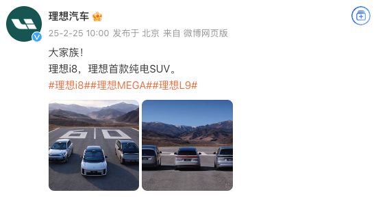 2025年02月25日,理想汽车突然放了个大招,公布了其首款纯电SUV——i8的官方图片。这款新车的发布,也标志着理想汽车“L系列(增程)、i系列(纯电SUV)、MEGA(纯电MPV)”三大产品矩阵的正式成型。